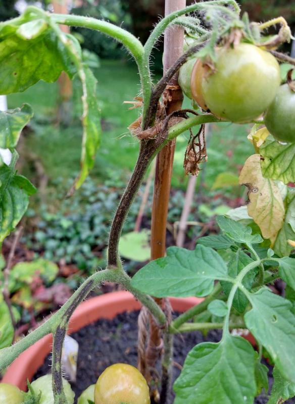 Muss ich mal genauer schauen bei der Gartenperle, ob das unten nur Erde ist am Stängel oder auch ein Befall. Allerdings würde ich damit so oder so dann sämliche Früchte wegschneiden.