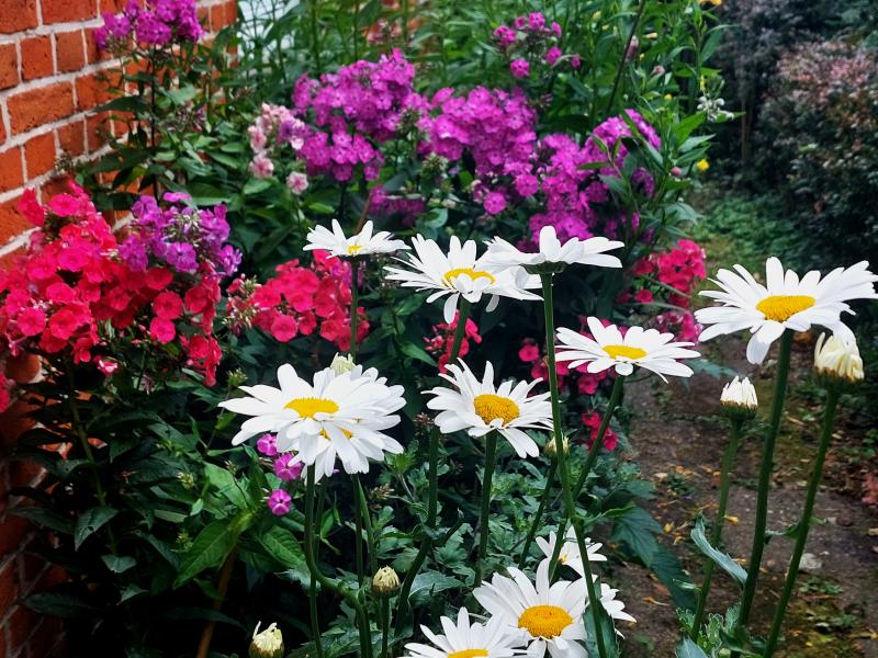 Flammender Phlox, löschendes Weiß der Margeriten.