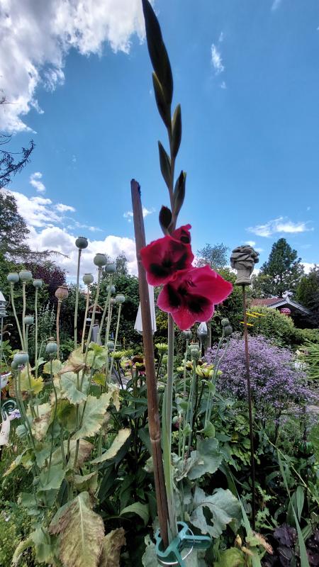 Es zieht wieder zu, also schnell fotografiert. Gladiolus papillo "Ruby". Leider nur 1 Stängel.