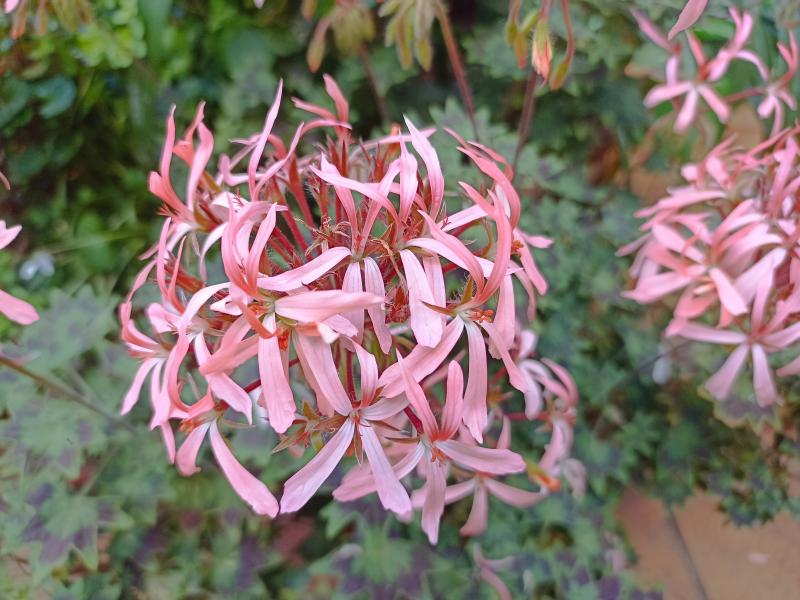 Von der bekam ich vor Jahren auch mal einen Stecki. Namen wußte ich nicht, nach googlen könnte es Pelargonium stellar miniatur 'Bird Dancer' sein, sicher bin ich aber nicht. Sie hat auch diese sternförmigen Blüten