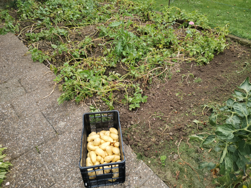 Die Kartoffeln sind nach 80 Tagen doch abgeraucht trotz Pflanzenschutz. Sie hatten auf jeden Fall keine Krautfäule. Ich denke sie haben durch Stress usw einfach früh abgeschlossen.