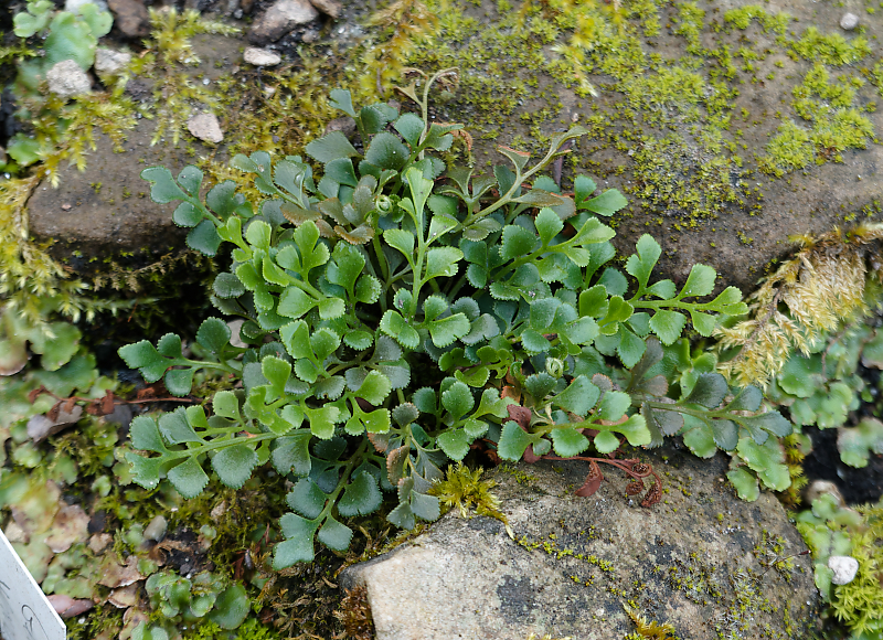 Asplenium ruta-muraria. Aus Sporen, dann angesiedelt.