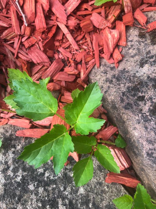 Der seltsam unnatürlich rote Mulch scheidet als Verursacher von Reizungen aus?