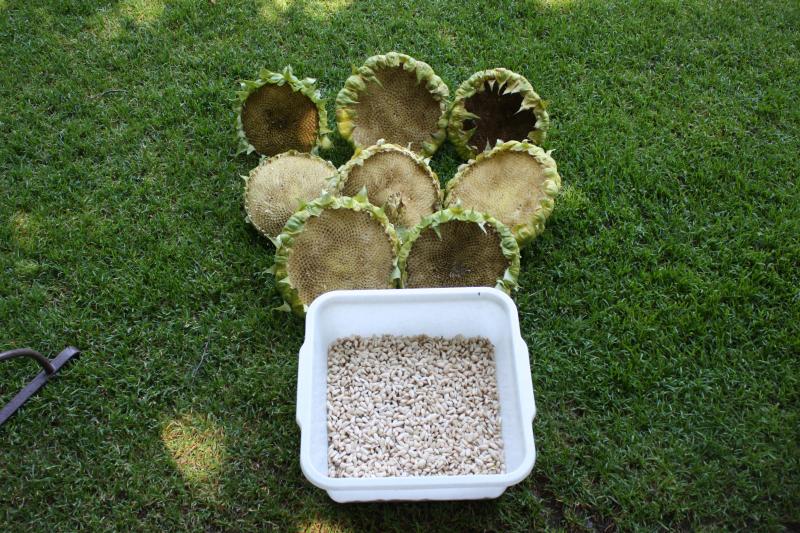 Ich hab die Sonnenblumenkerne aus den Fruchtständen befreit