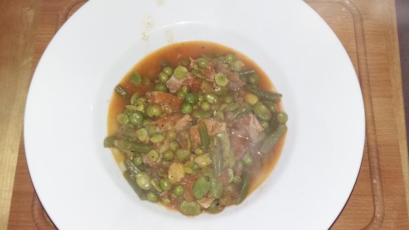 Und heute gab es ein ganz besonderes Essen: Den Sommer-Balkantopf nach martinas Rezept (inzwischen gibt es ihn in zahlreichen Varianten von martina und mir). Also heute: Schweinefleisch, Tomaten, grüne Bohnen, Fave und Erbsen. Allerköstlichst. :D