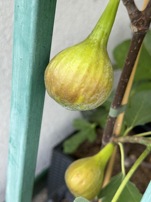 2 Brown Turkey Brebas reifen vor sich hin. Bis Samstag oder Sonntag hoffentlich reif, dann sind wieder 35 Grad prognostiziert.