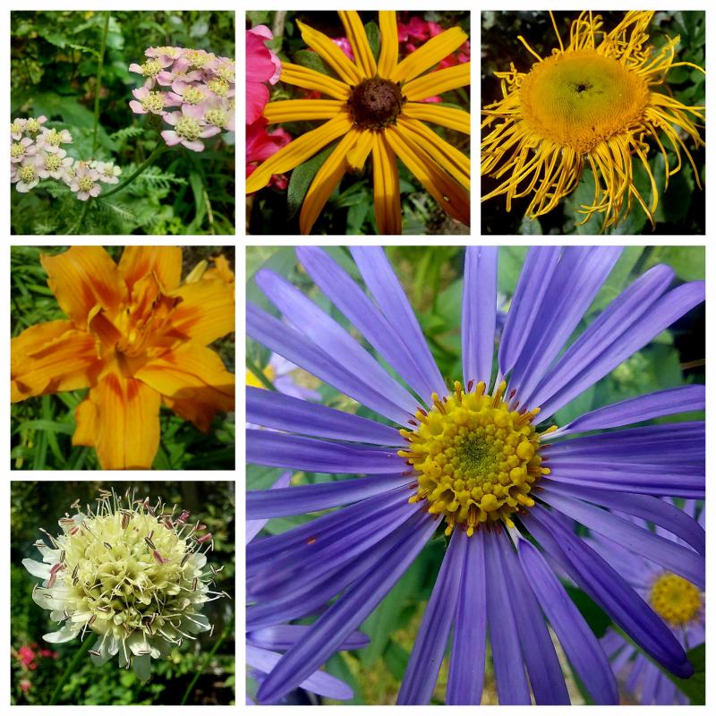 Scabiosa gigantea, Hemerocallis fulva, Achillea millefolium, Telekia speciosa, Goldsturmrudbeckie, Aster frikartii.