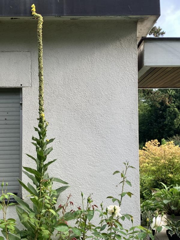 Da wollte eine geradeaus durch das Vordächlein. Aber das schafft selbst eine Königskerze nicht.;)