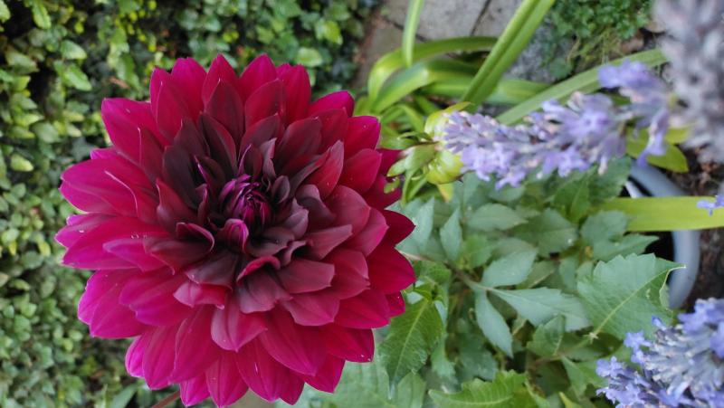 Ein Bisschen Kübelgarten im Beet. Unter den Kübeln sind Narzissen.