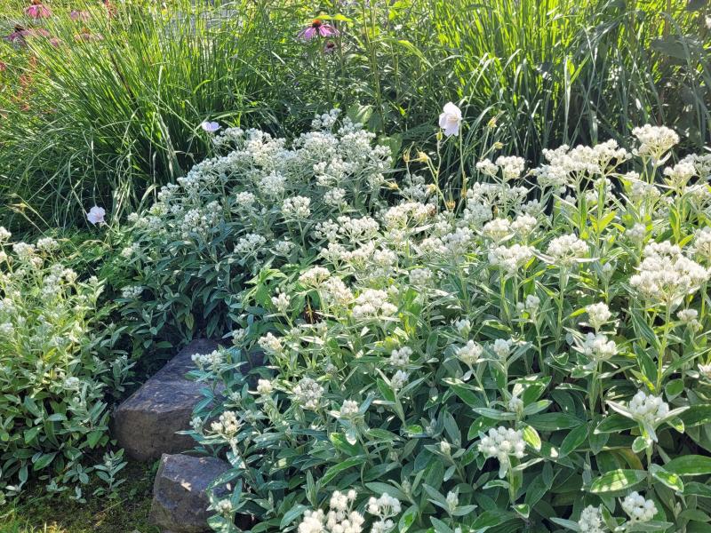 Hier blüht nun Anaphalis triplinervis 'Silberregen' (?)