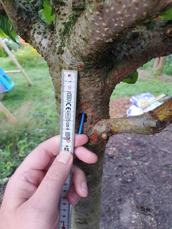 bei meinem gestern erhaltenen Baum (Mispel germanica) habe ich, während ich gerade das Pflanzloch verfüllen wollte, ein Frassloch entdeckt. Das konnte man im Vorfeld leider nicht sehen, da der Baum direkt vor dem Transport beschnitten wurde. Ich bin von der Baumschule gerade etwas enttäuscht. Da der Baum mit 400€ doch eine kleine Investition war, stellt sich für mich die Frage, wie gefährdet der Baum dadurch überhaupt ist. Das Loch ist ca. 1cm tief und breit und geht aber innen fast 10cm senkrecht nach oben, bis in den Kronenansatz hinein. Beim (vorsichtigen) Nachmessen mit dem Draht, kamen einige Ameisen und Ohrenzwicker aus dem Loch gepurzelt. Was sagen die Profis, ist das akzeptabel und der Baum wird das schließen können, oder ist er tatsächlich gefährdet?