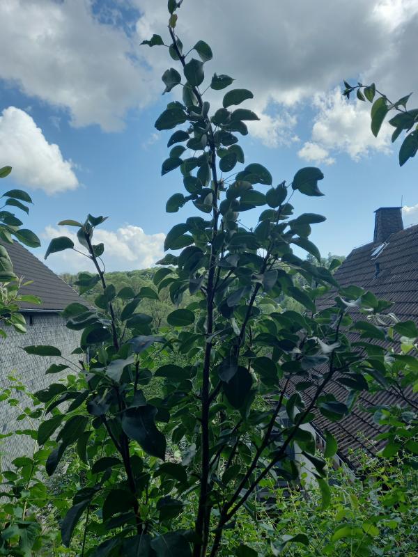 Dafür dass diese belgische Blutbirne auf Kirchsaller steht, bleibt sie angenehm klein. Max 20 cm Wuchs dieses Jahr bei guten Bedingungen. Clapps Liebling auf Quitte direkt daneben musste einen Sommerschnitt haben.