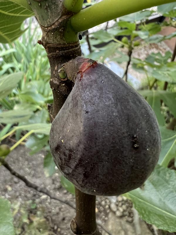 Hier scheint gerade eine Herbstfeige zu reifen, Sorte Bécane.