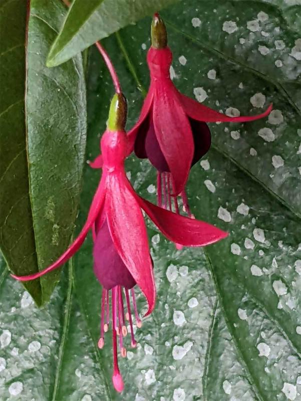 Hier blüht momentan meine Fuchsia 'Dying Embers'