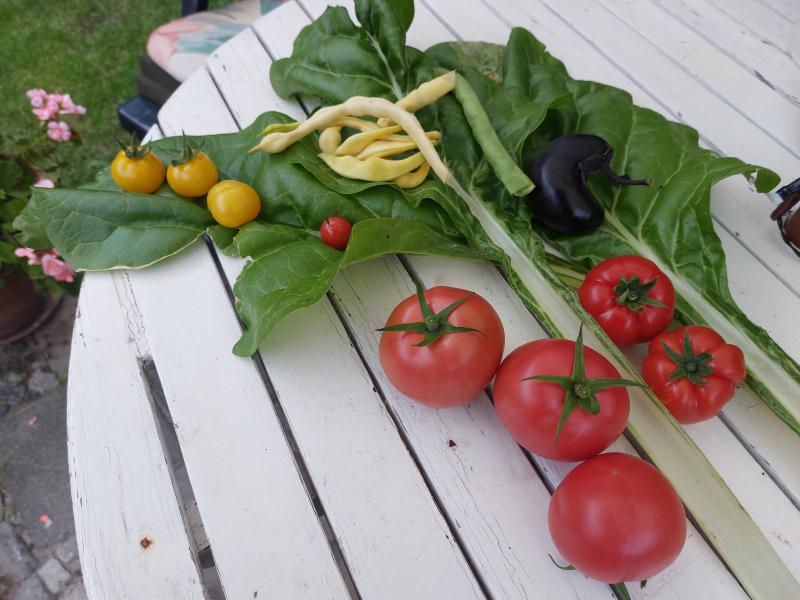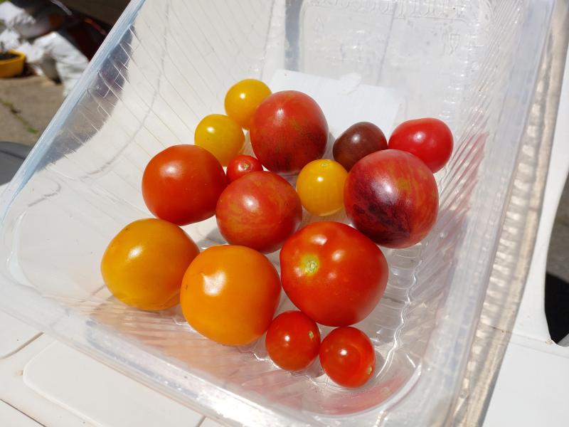 Dieses Jahr ziemlich spät beginnt hier die Tomatenernte. Heute habe ich (ohne Foto), Goldita, Homosa, Thai pink Kumquat und Red Velvet geerntet. Und etwas, wovon ich nicht weiss was es ist..