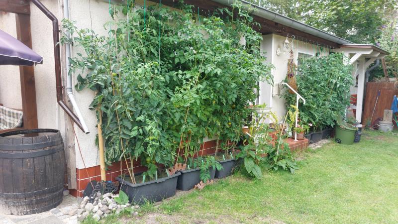 Noch keine Braunfäule, aber ich habe wegen des komischen Wetters jetzt viele Verzweigungen gekappt und auch nach oben hin begrenzt, wo es zu dicht war. Die müssen abtrocknen können, da sie ja nicht richtig überdacht sind. Blütenendfäule ist jetzt rückläufig, ich habe mit Gartenkalk gegossen, 1x. Blattdünger hatte ich nicht. Muss ich mal besorgen. (Calciumhydrogencarbonat???)