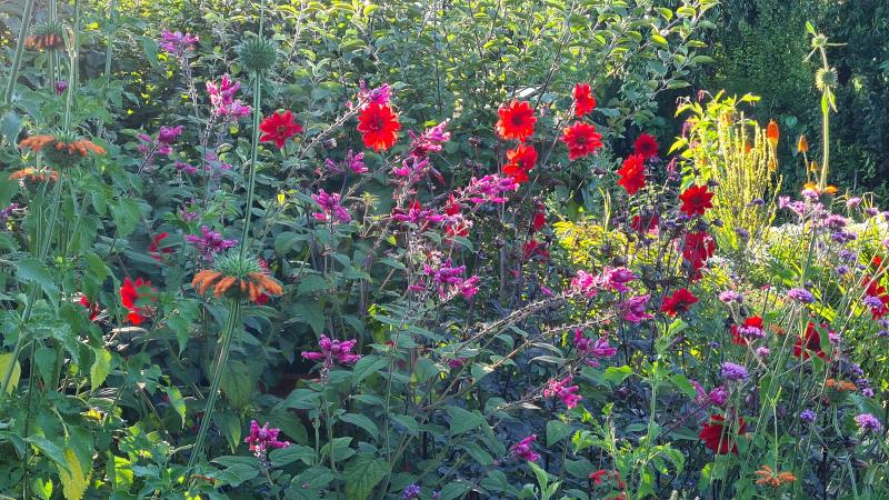 Noch ein Bild von Salvia involucrata, zusammen mit Dahlie Bishop of Llandaff.
