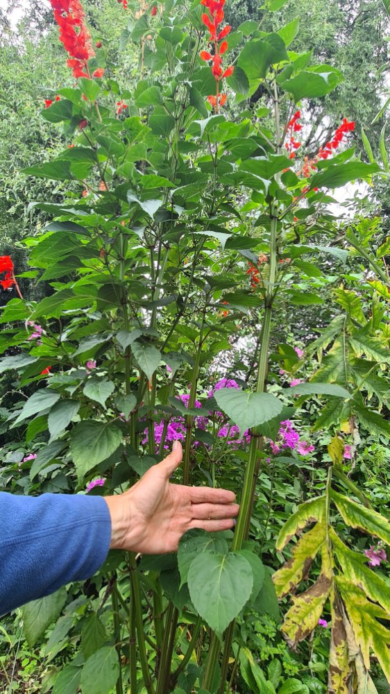 Wenn man Salvia splendens nur als gestauchten Beet-Gnom kennt: allmählich nähern sie sich der Wuchsleistung der Wildform an. Erstaunliche Internodien!