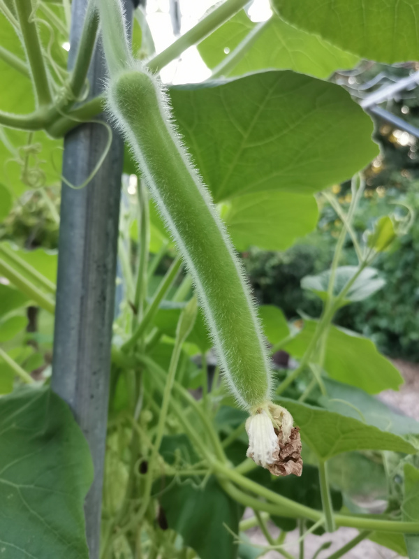 Ja, genau, der ist das. Man kann ihn auch liegend ziehen. Anfangs braucht er etwas Wärme, ähnlich wie Gurken. Manche lassen ihn auch in Bäume reinwachsen.