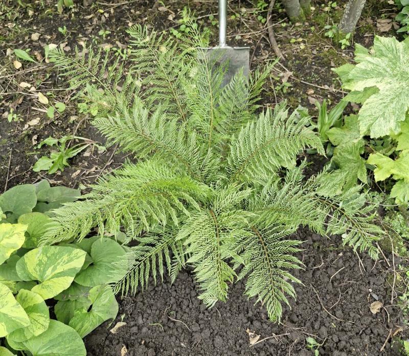 Wenn ich die Farne sehr klein bekomme, treibe ich etwas mehr Aufwand, denn bei uns sind Amseln ein Riesenproblem. Kaum ist etwas frisch in der Erde, wird es nach Regenwürmern untersucht und von rechts nach links gedreht. Das killt schnell so manche Pflanze.