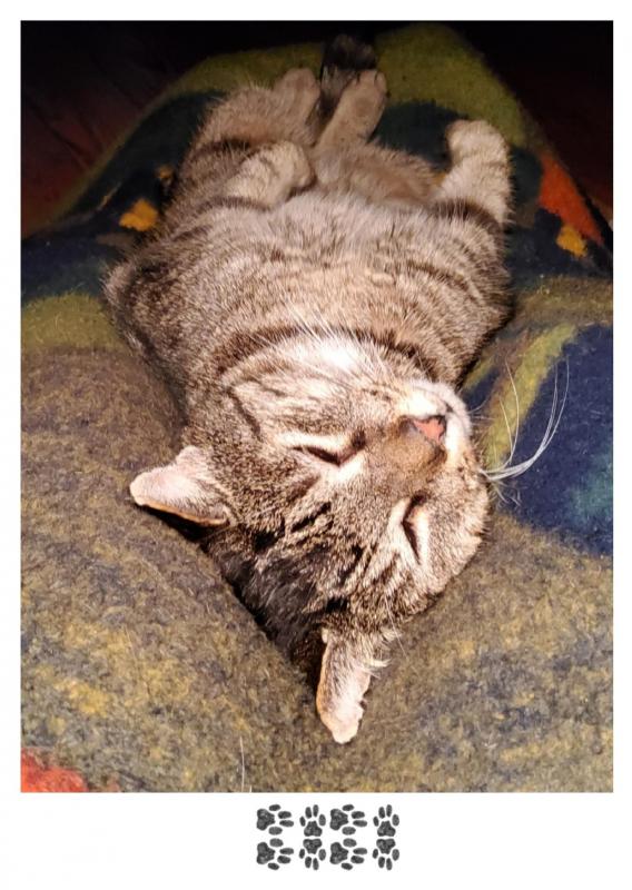 Mein "Fast-immer-draußen"-Kater Speedy kam eben durch die Klappe geplatzt, triefnass. Ich durfte ihn abtrocknen, nach dem Frühstück verschwand er im Schlafzimmer. Inzwischen haben Toffee und er zumindest einigermaßen Burgfrieden geschlossen. Dabei haben sie von Geburt an jahrelang zusammen mit ihren anderen Geschwistern in einem Bettchen geschlafen.