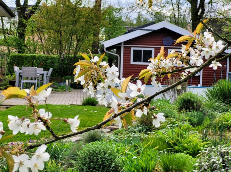 Meine Freundin hat in ihrem Garten eine Süßkirsche. Ein herrlicher Baum! Im Frühjahr wunderbare weißen Blüten, lichter Schatten im Sommer, wegen der Stare und Krähen leider keine Früchte, aber ein sehr hübscher Baum!