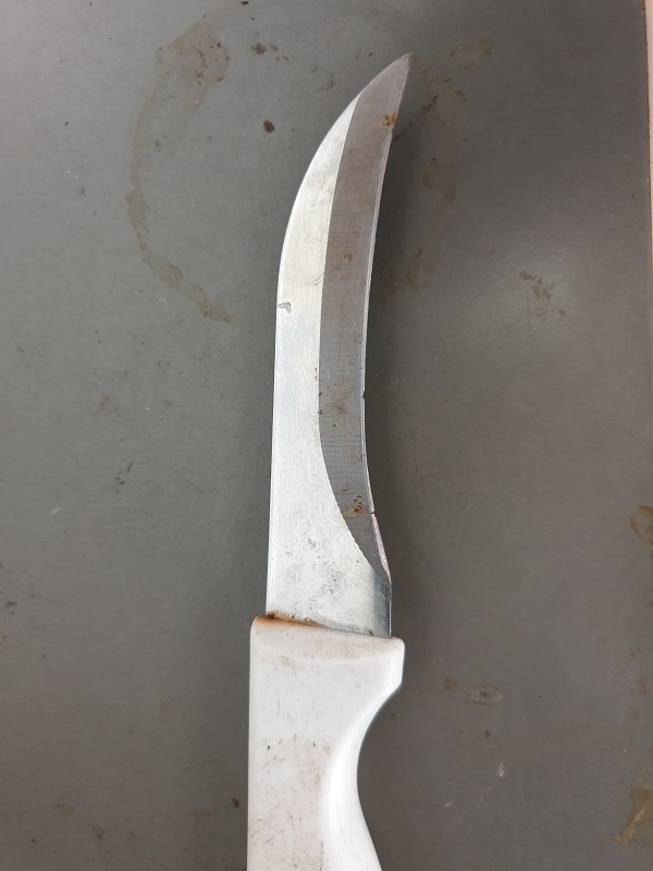 Gut geht es z.b. mit einem gebogenen Messer wie diesem.