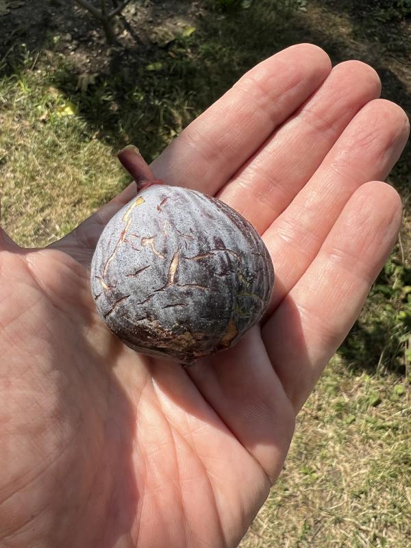 Die erste Herbstfeige eines ausgepflanzten Strauchs an einem 3. August, das ist hier absoluter Rekord. Selbst für eine frühe Sorte ist das in Mitteleuropa eher ungewöhnlich, auch wenn sonst alles noch grün ist. Bisher begann es immer nach dem 15.8.