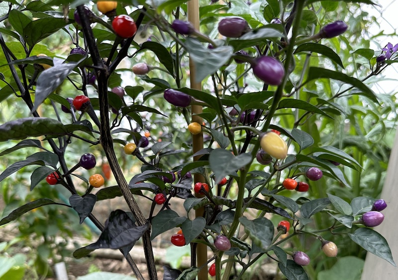 Hier haben sich die meisten Sorten gefangen. Anfangs kühl und im Wuchs gebremst, wird aktuell die Nässe ausgenutzt. Man kann zufrieden sein. Hier Jalapeno.