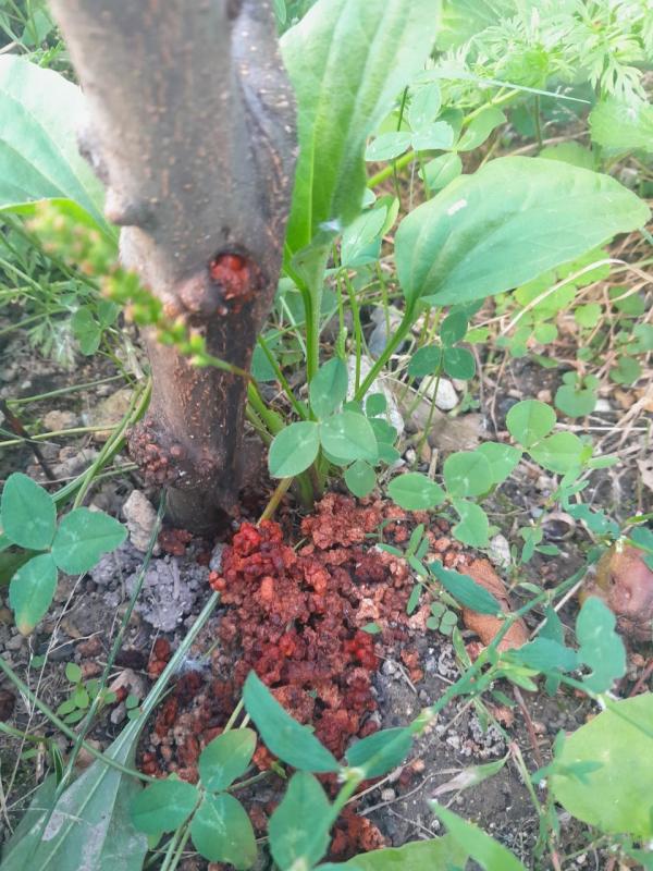 hat von Euch schon einmal dieses Schadbild an einem Apfelstamm gesehen? Was könnte das sein?