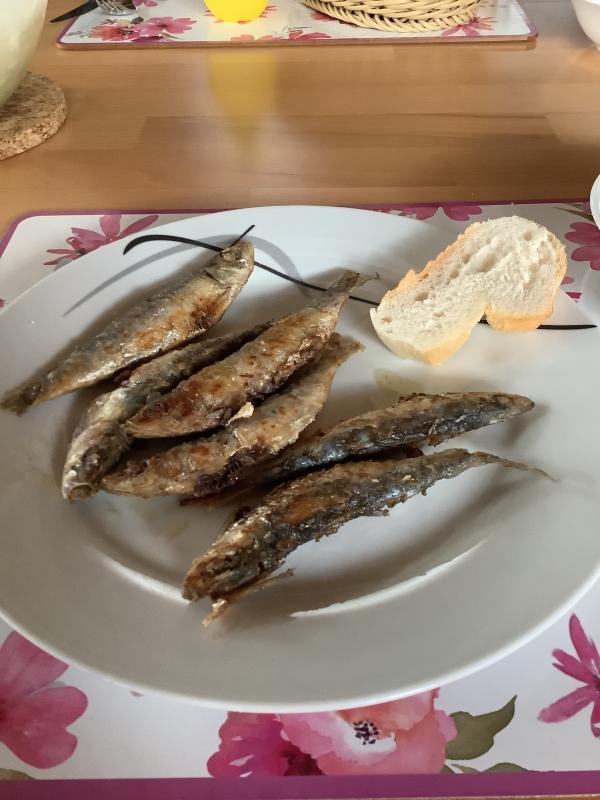 heute liegen kleine Sardinen in der Freiluftküche in der Pfanne
