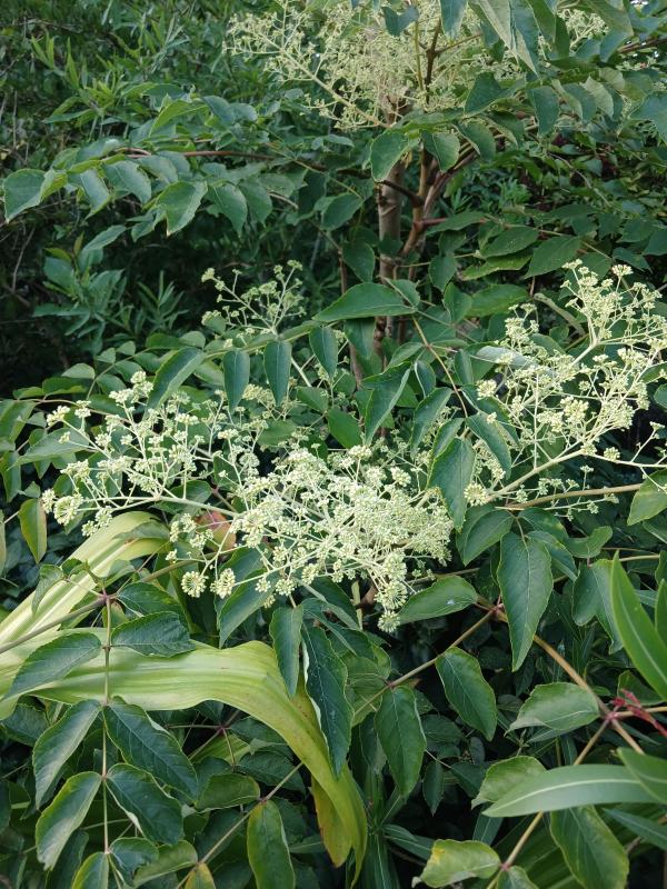 Hier duftet der Clerodendrum trichomotum vor sich hin , mitgebracht als Sämling vor 11 Jahren. Wenn es genügend Taubenschwänzchen gibt macht er auch Früchte
