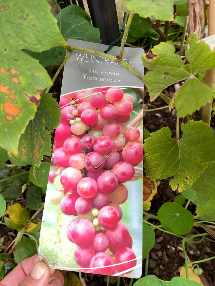 Beim Händler sah ich sogenannte Erdbeertrauben im Angebot, welche ausgesprochen lecker sein sollen. Also Trauben mit einem Walderdbeeren-Aroma.