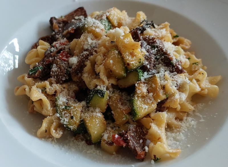 Wenn GG kocht,bleibt meistens etwas übrig. Gestern waren es Nudeln(Spirelli). Heute ear ich mit Kochen dran. Also habe ich gut gewürztes Mischgemüse zubereitet, die Nudeln untergemischt, eine Soße aus Creme fraiche, Eiern, geriebenen Parmesan, Petersilie, S+P darüber gegossen und im Backofen überbacken. Es schmeckte sehr gut.