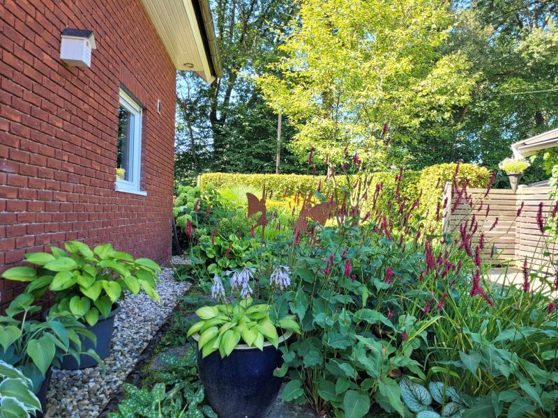 Im kühlen Halbschatten des Westbeetes werden die Farben etwas besser... weiter hinten flirrt das Sonnenlicht. 8)