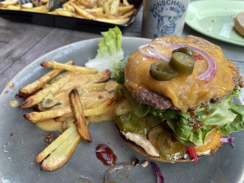 Deshalb gab es bei uns gestern Backofenpommes mit Chili-Cheese-Sauce und einem dicken Hamburger mit allem drum und dran aber ohne "Deckel". Es war sooo lecker! Die Chili-Cheese-Sauce habe ich nach diesem Rezept gemacht. Und kann es wärmstens empfehlen.