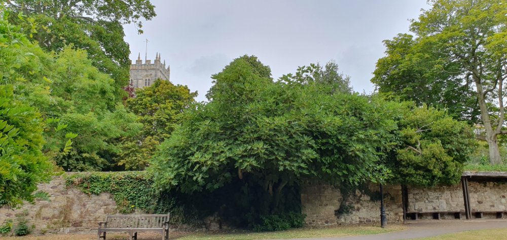 Riesige Feige in Christchurch, Südengland, direkt am Kloster. Leider keine besonders sinnvolle Sorte, weil keine Brebas sichtbar und die Herbstfeigen werden sicher nichts mehr. Viel zu klein im Moment.