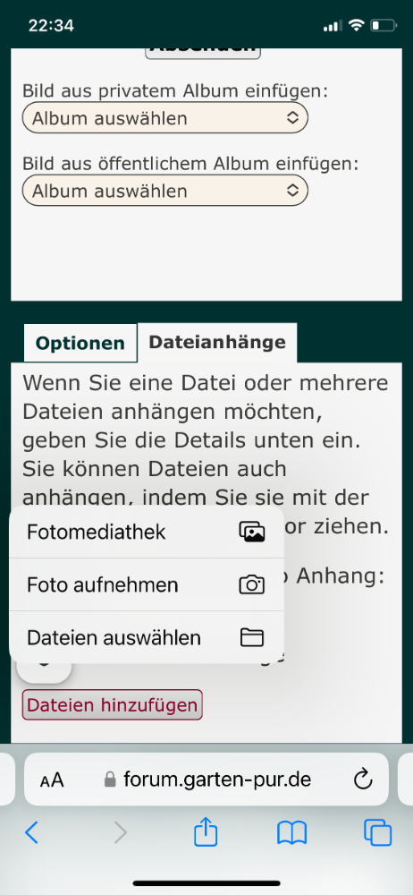 Dann auf <Dateien hinzufügen> gehen. Dann erscheint zur Auswahl auch die Mediathek und ich kann das gewünschte Bild auswählen.