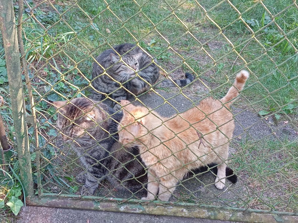 Tatsache ist, sie können natürlich jederzeit raus und wissen und nutzen das auch. Sie haben ihr eigenes kleines "Tor" vorn zur Straße, eins zum linken Nachbarn, dort steht immer das Hoftor offen und über den Zaun kämen sie natürlich auch raus. Schauspieler, allesamt
