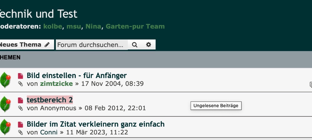 anklicken des threads "testbereich2" führt zu fehlermeldung.