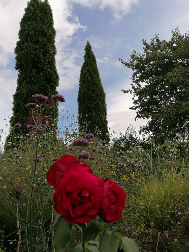 Red Leonardo da Vinci steht hier seit Ewigkeiten als Stamm, kommt leider in die Jahre. Und das geht bei den Stammrosen doch schneller.