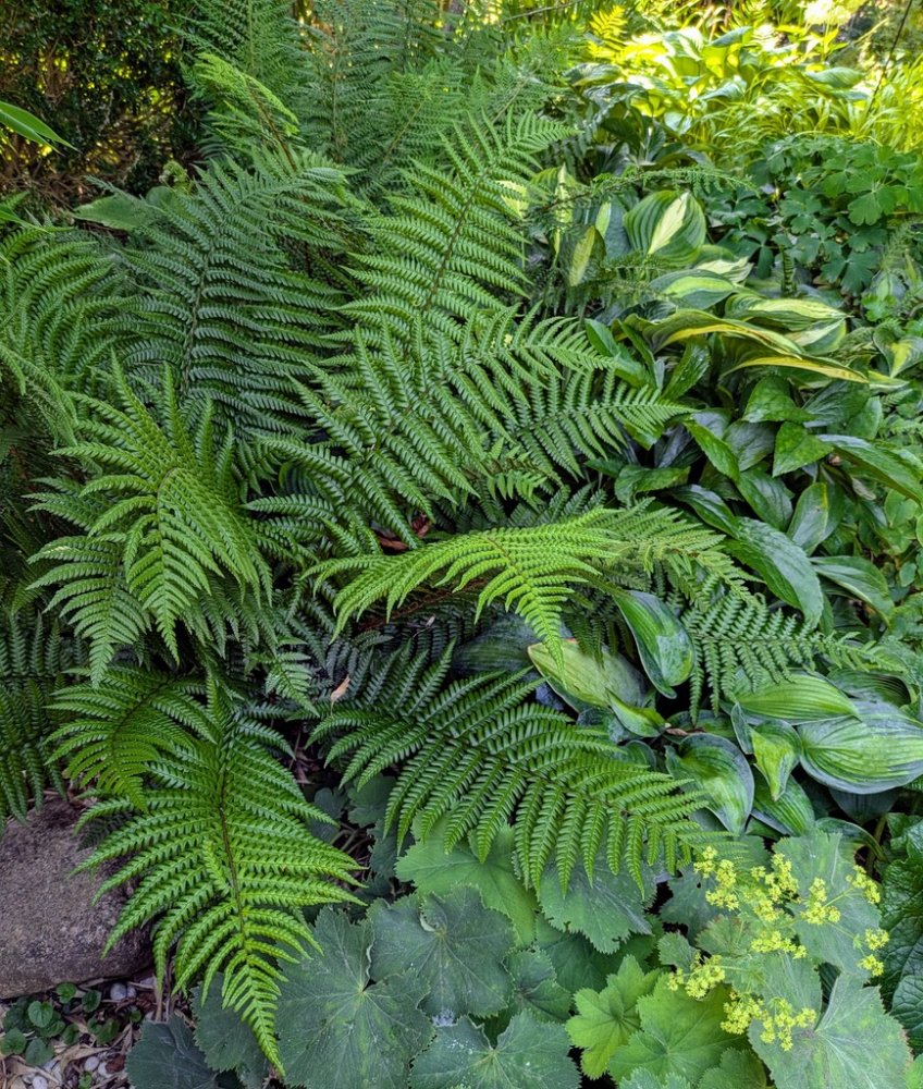Dieser Farn ist ein perfekter Lückenfüller, er lässt sich auch im Hochsommer (wenn ein Virusbefall sichtbar ist) umsetzen und verträgt auch etwas Mittagssonne. Ich würde davon gerne ein paar Jungpflanzen in Reserve parat halten wollen.