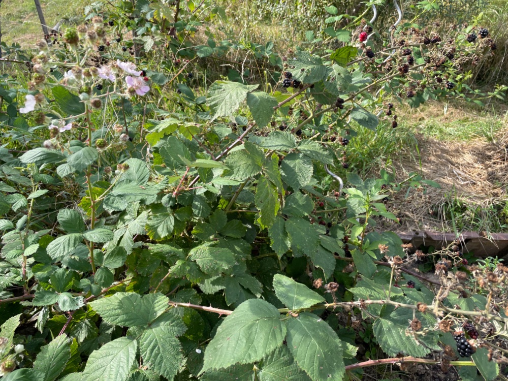 Vor Jahren habe ich eine Stachelbrombeere gepflanzt weil ich hoffte, dass sie aromatischere Beeren hat als stachellose. Ja, etwas aromatischer sind sie, aber besonders interessant ist, dass sie bis zum Frost immer wieder Seitentriebe mit Blüten und Früchten treibt. Allerdings ist sie ein Wuchermonster.