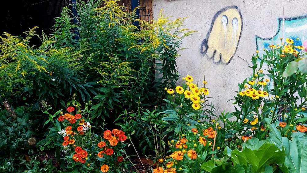 Hast Du den Graffiti-Künstler im Garten, Polluxverde? Oder ist Deine Straßenfront so unsagbar üppig bepflanzt?