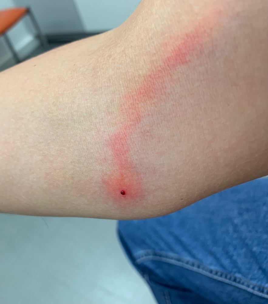 Jedenfalls hab ich heute einen Strich war eben beim Arzt darf erstmal Antibiotika nehmen. Hätte ich mal besser lange Kleidung getragen…