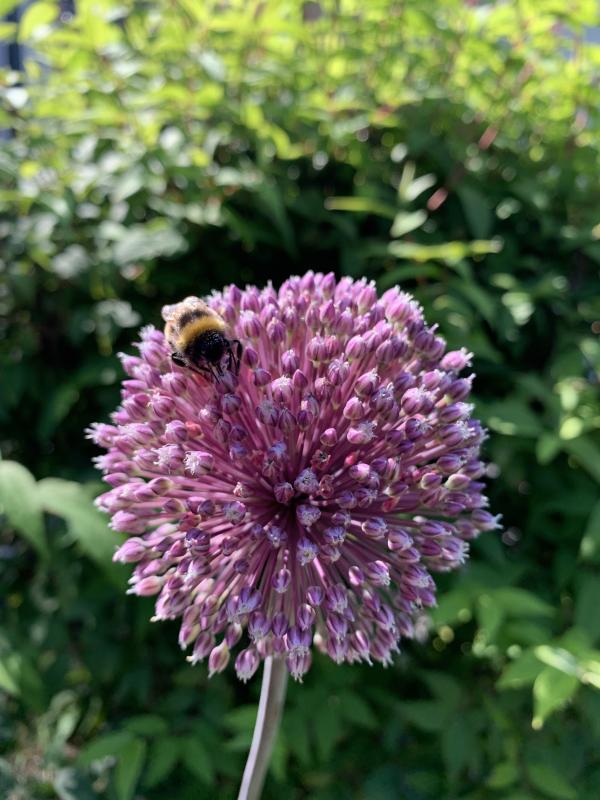 Er öffnet auch immer nur ein paar seiner Blüten, weshalb er nicht ganz so stark beflogen wird wie zurzeit Allium Millenium.