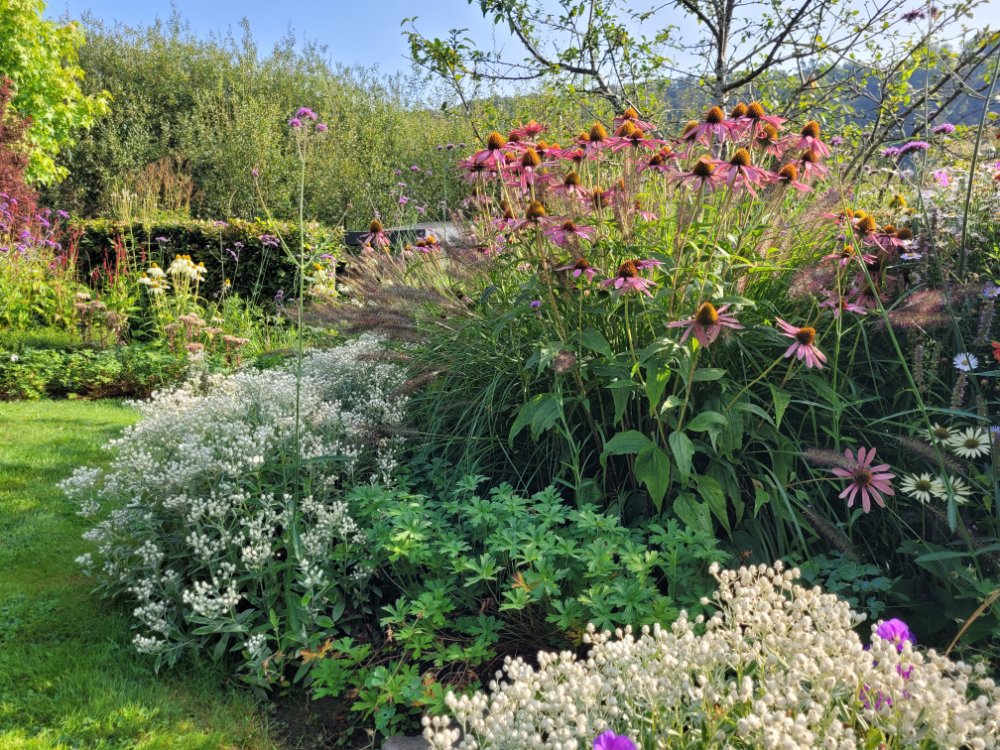 Beim morgendlichen Rundgang wirkt der Garten schon ein wenig herbstlich, wie ich finde. Die Gräser dominieren nun so langsam die Szene...