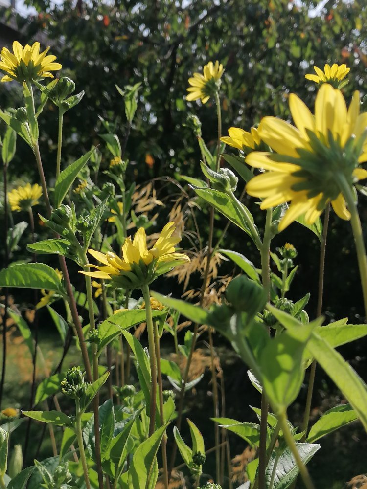 Alle Helianthus (wohl doch Lemon Queen und H. giganteus) litten, giganteus hat sich halbiert im Dürresommer 2022 und war hüfthoch, die Lemon Queen ist in dem Sommer optisch ganz verschwunden, bis wohl auf ein paar Wurzelreste, die ich ausgerechnet weitervermehrt habe.