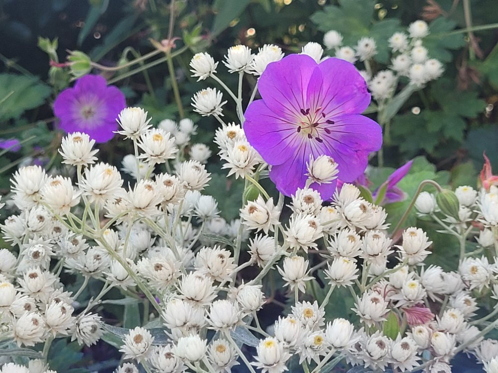 Geranium, blüht wieder bzw. immernoch Auch Rosen mit herrlichem neuem Blütenschub.