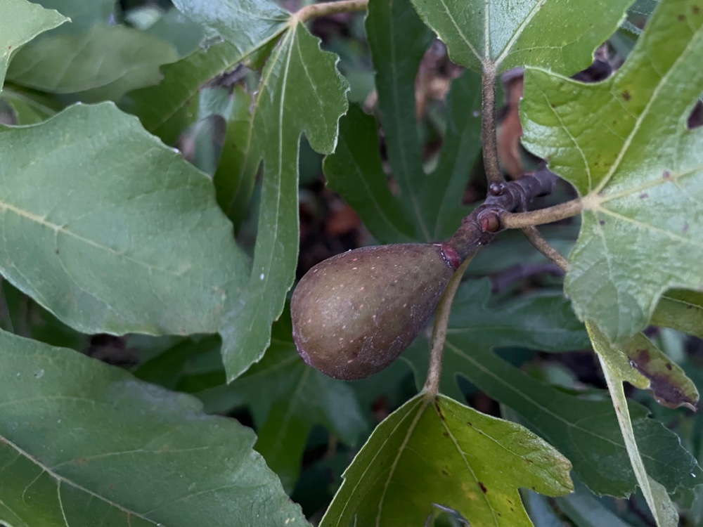 Nachdem sie abgeworfen hat, macht sie jetzt Herbstfeigen, die noch brauchen.